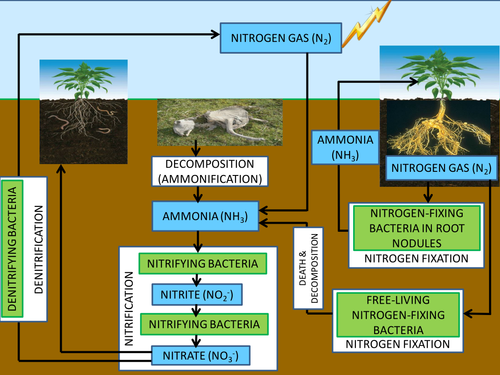 Nitrogen cycle the term nitrogen cycle 1 refers to a series of reactions in which the element nitrogen and its compounds pass continuously the major components of the nitrogen cycle are shown in the accompanying figure. This nitrogen molecule is converted into nitrates and nitrites which can be taken up and used to make the required molceule. Agriculture, the global nitrogen cycle, and trace gas flux. Nitrogen, a component of proteins and nucleic acids, is essential to life on earth.