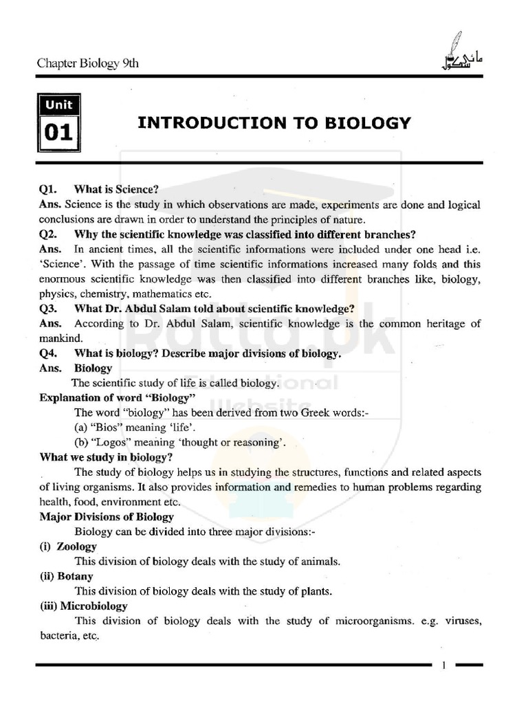 Introduction to biology chapter 2: 9th class biology chapter 2 books. , metabolism, clinical and applied biochemistry, nutrition, molecular biology and hormones. 9th class biology is considered as the initial step for the aspirants who wish to study science subjects in future as well and wish to become a doctor.